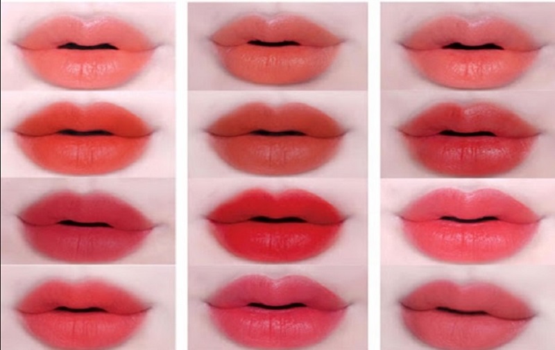 – Phun môi màu đỏ cam: Mang đến vẻ đẹp tươi trẻ và rạng rỡ, đỏ cam là lựa chọn lý tưởng cho những đôi môi nhợt nhạt và làn da tối màu. Sắc màu đỏ cam giúp che khuyết điểm và ăn gian tuổi hiệu quả.